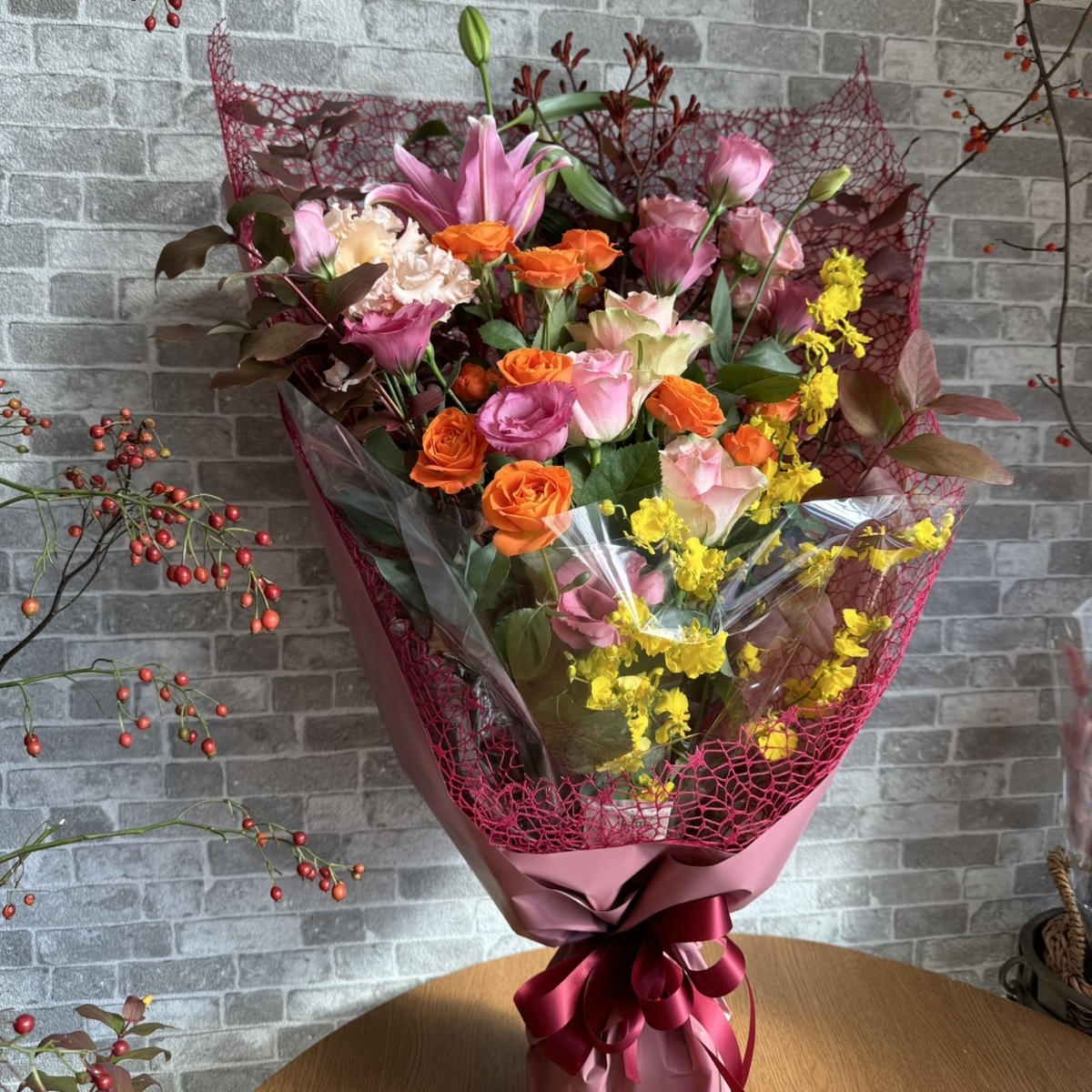 季節のお花をふんだんに使用した、ボリューム感のある花束。