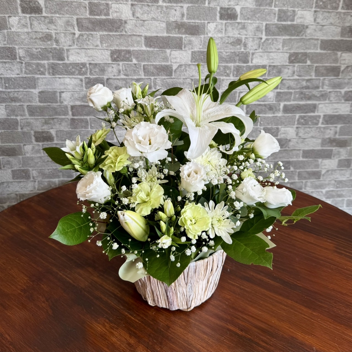 季節に応じたホワイト系の花材でお作りします。